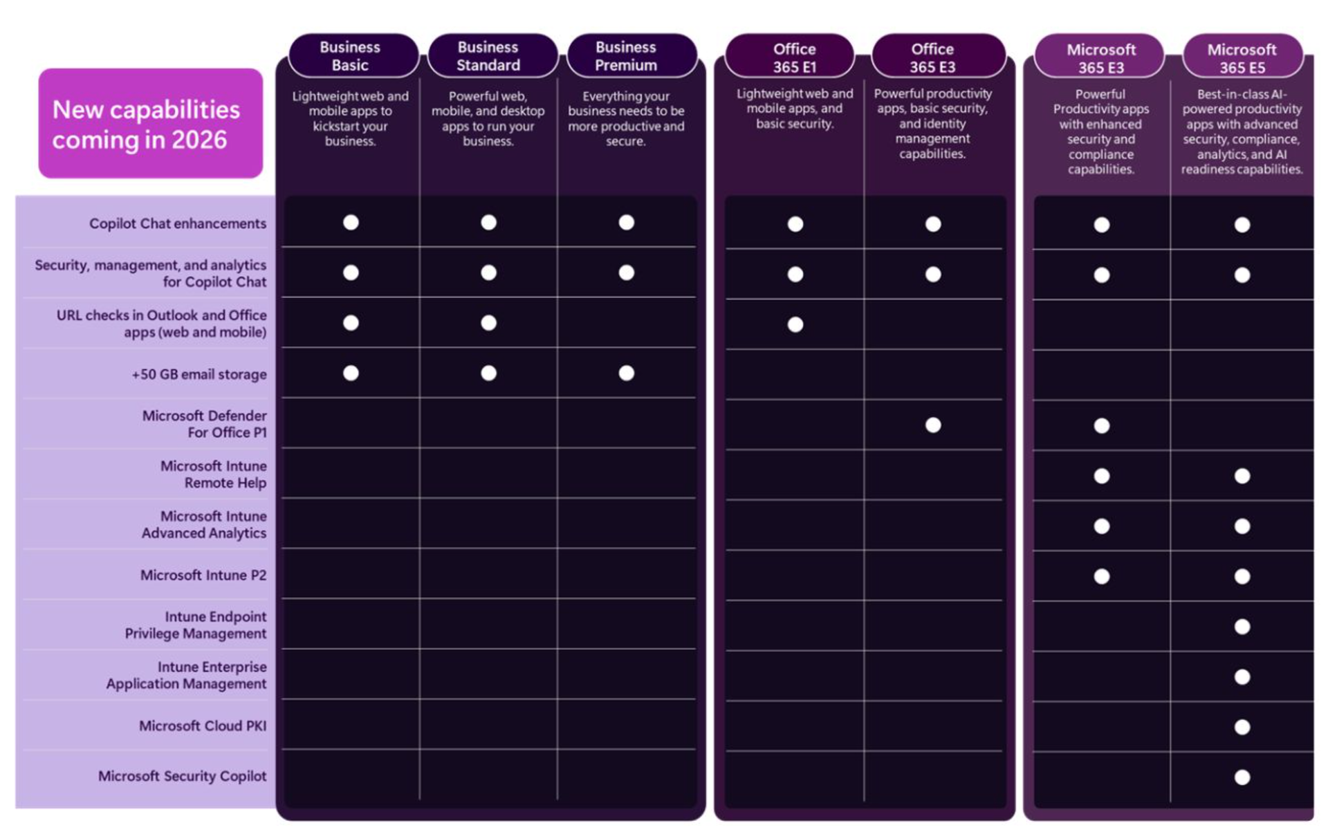 (Business Premium and Office 365 E1 remain unchanged.)